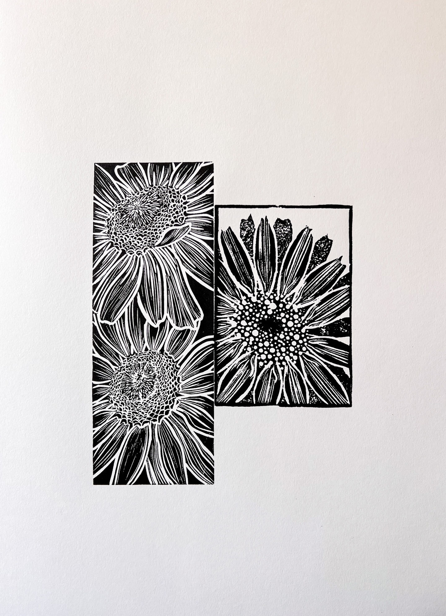 Fleeting Fragments is my most recent body of work, inspired by live sketches and photographs of wildflowers I’ve gathered over the past two years. Each print is tied to a specific memory or emotion, forming a nostalgic reflection on passing moments. Created using linocut printmaking, the series features recurring carved patterns that connect each piece—like chapters in a book. Through shifting perspectives and fine detail, I explore the impermanence of emotion and the quiet, enduring beauty of nature.